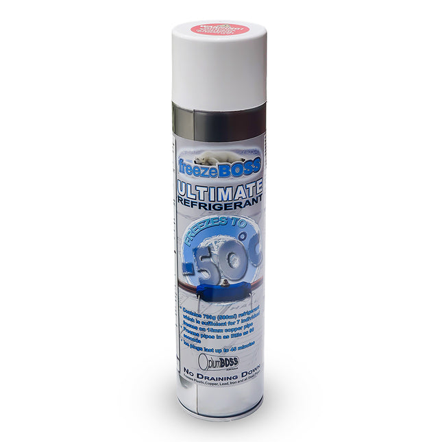 Contains 700g (580ml) refrigerant which is sufficient for 7 individual freezes on 15mm copper pipe Freezes pipes in as little as 90 seconds Ice plugs last up to 45 minutes Freezes to minus 50 degrees
