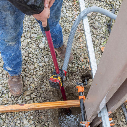 Pumps 56 litres/minute with fully charge battery.  Rugged, contractor grade, impact-resistant parts and aluminium body for durability and strength. Kit includes: