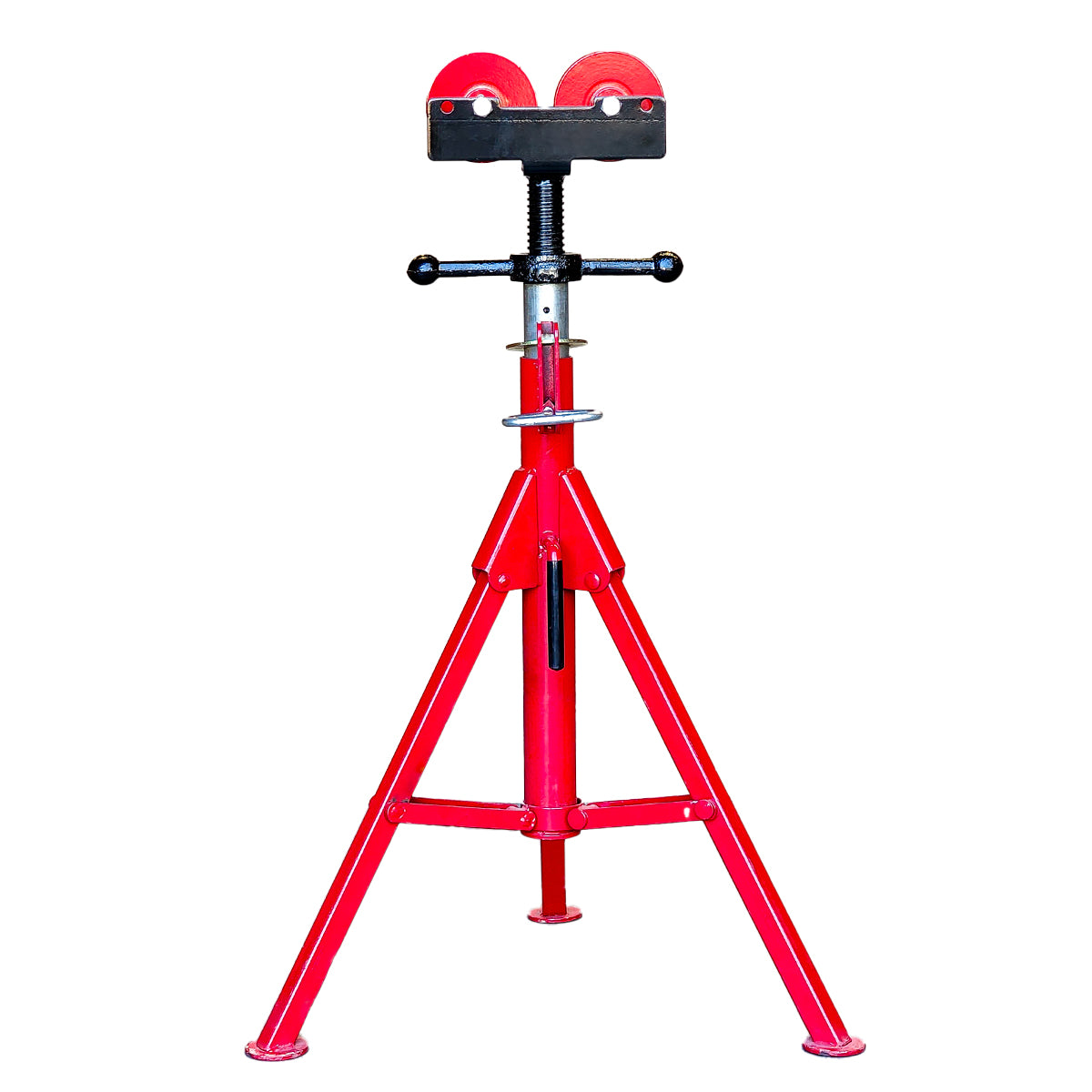 These pipe jacks with adjustable Roller heads make it very easy to rotate various sized pipe on your stand