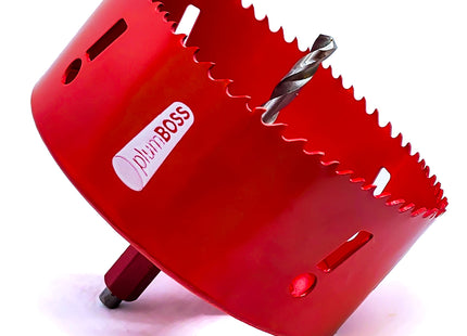 The plumBOSS Built-In Arbor Hole Saw is the Ultimate Plumber's Hole Saw. It's extra-thick 5.5mm Back plate and welded-in arbor make it the most durable hole saw when drilling into pipes or on angles. Changing sizes is a breeze, with no need to worry about arbors and pilot drills. Ultimate Convenience, Ultimate Durability, Ultimate Quality.