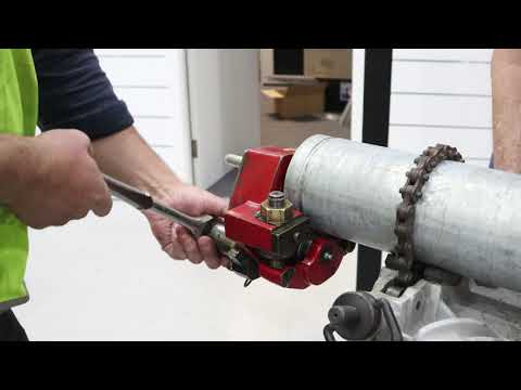 RG26 roll groover manually grooves in-place pipe and pipe too short for powered groovers. It is easily carried and positioned with a convenient handle. Screw knob on top of unit makes for easy depth adjustments. Included ratcheting handle is used for feeding and turning. Only 150mm clearance required.