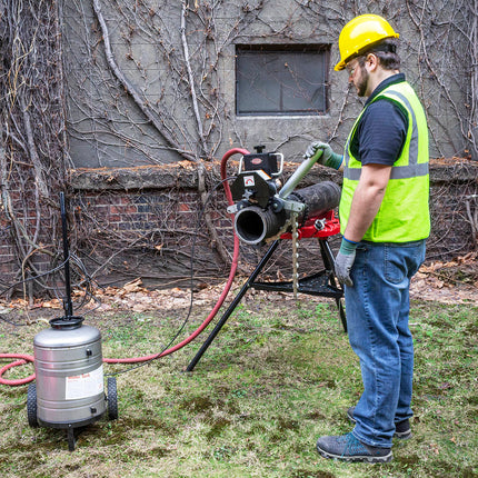 These lightweight, easy-to-use Universal Pipe Cutters (UPC) are available to cut 6in - 48in (150-1300mm) ductile iron, cast iron, clay, concrete, PVC, or PE pipe. The UPC636 comes in a steel toolbox with a 22L stainless steel water tank and cart. Cut pressurised pipes or even underwater with a powerful pneumatic motor. Needs only 300mm of clearance around the pipe. A unique roller chain mechanism provides a square cut nearly every time.