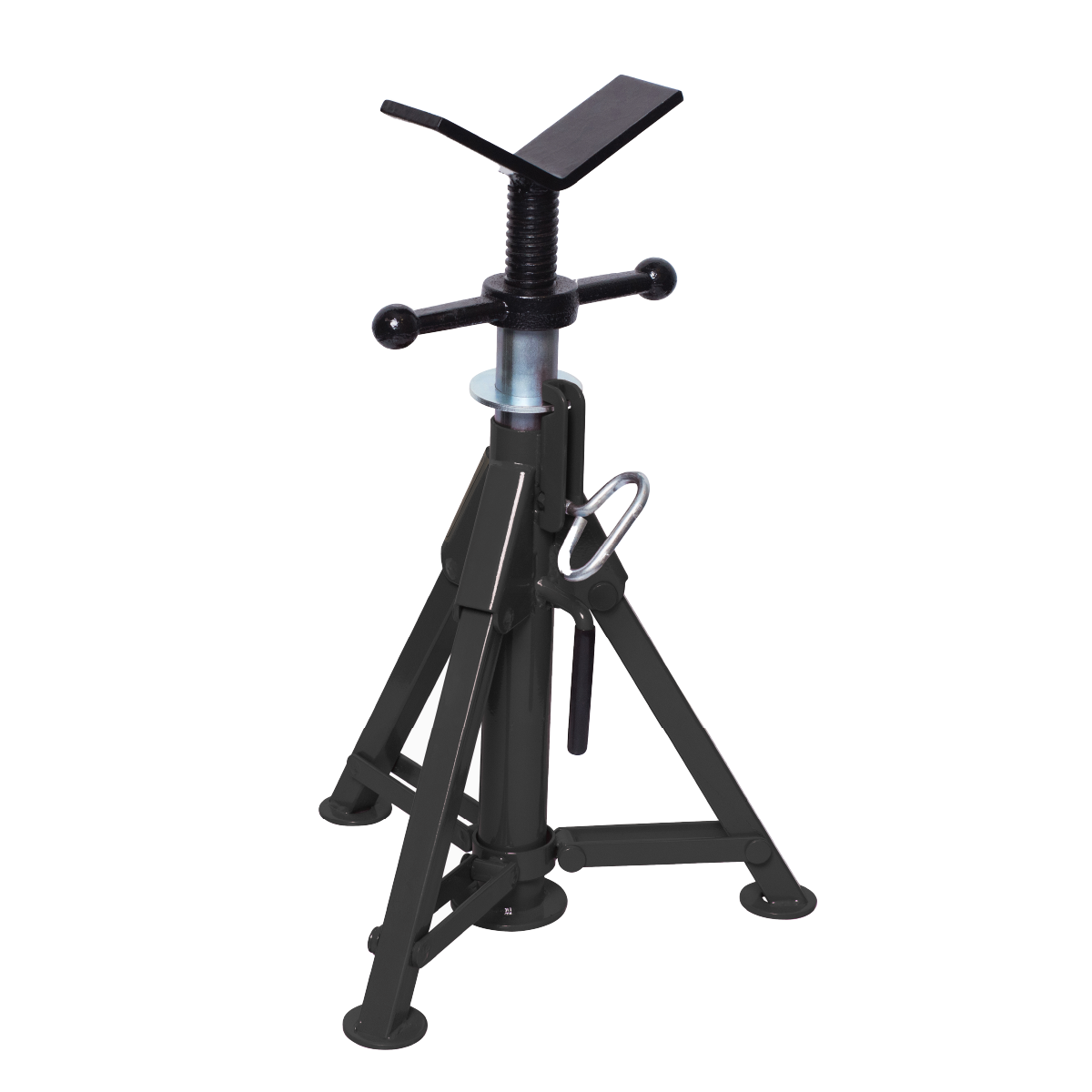 A convenient adjusting screw allows accurate height adjustment to achieve the correct working position. Once set, a hardened steel locking ring secures the height under load, helping ensure consistent performance and long service life. The V head provides secure pipe positioning for fabrication, welding, and general pipe handling tasks.